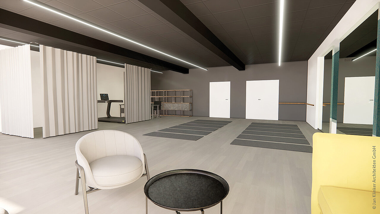Auf freien Flächen neben Physiotherapie und ExerCube entsteht ein modernes, seniorengerechtes Sportstudio, das Bewegung und Begegnung miteinander verbindet. Hier können unsere Bewohnerinnen und Bewohner, aber auch Gäste aktiv bleiben, Neues ausprobieren und sich mit anderen austauschen.