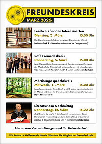 Konzerte, Lesungen, Gesprächskreise: Der Verein Freundeskreis des Hospitals zum Heiligen Geist e.V. organisiert ehrenamtlich viele Veranstaltungen bei uns. Jeden Monat stellt er ein buntes, kostenfreies Programm zusammen. Alle Interessierten sind herzlich eingeladen – eine Anmeldung ist nicht erforderlich!